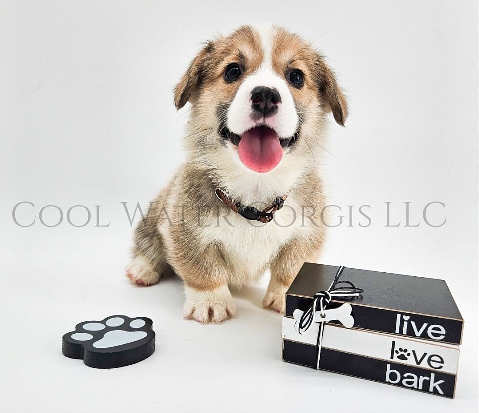Glitter(SOLD)is a snuggle bug who loves to roll around and play with her siblings. She will come with a puppy pack, 2 sets of vaccinations, 30 days of trupanion puppy insurance, akc pet reg. She will be a red/white Gotcha day is 3/28 $2850