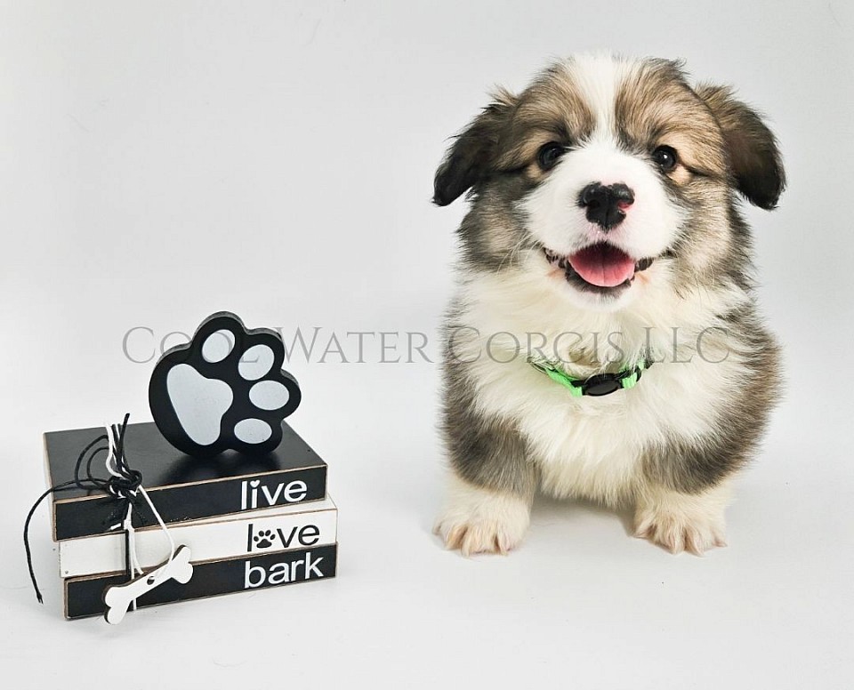 Romeo(SOLD) is very loving and sweet. He comes from two dogs who aim to please. He will be between 25-30lbs full grown. He is a dqrk sable fluffy snuggly boy! He will come with 2 sets of vaccinations and a puppy pack. He is a snuggle bunny who like to lay on his back while sleeping :-). He will be ready 3/29 $3250